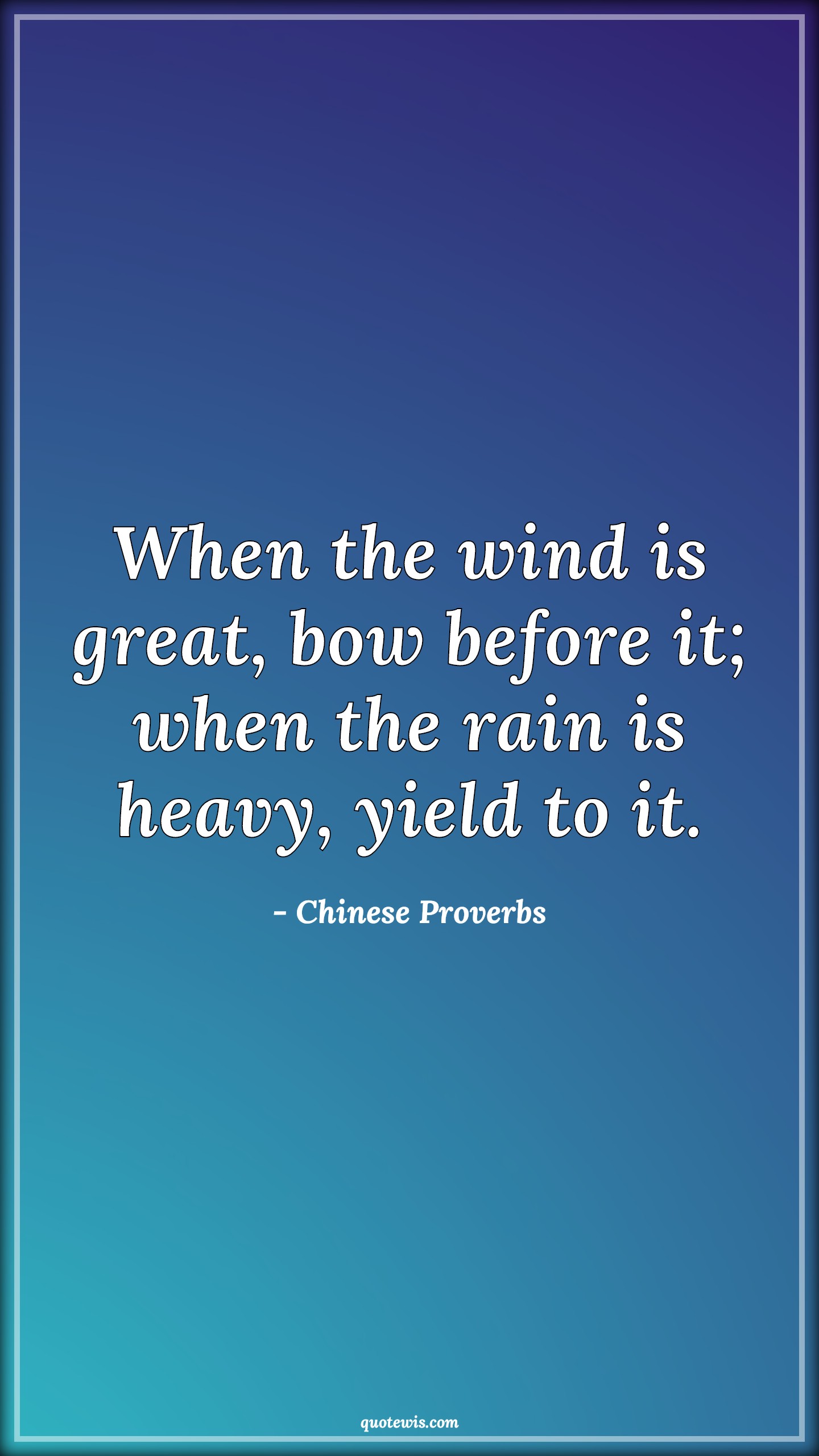 Quotes > Chinese Proverbs Quotes > When the wind is great, bow before it; when the rain is heavy, yield to it.
