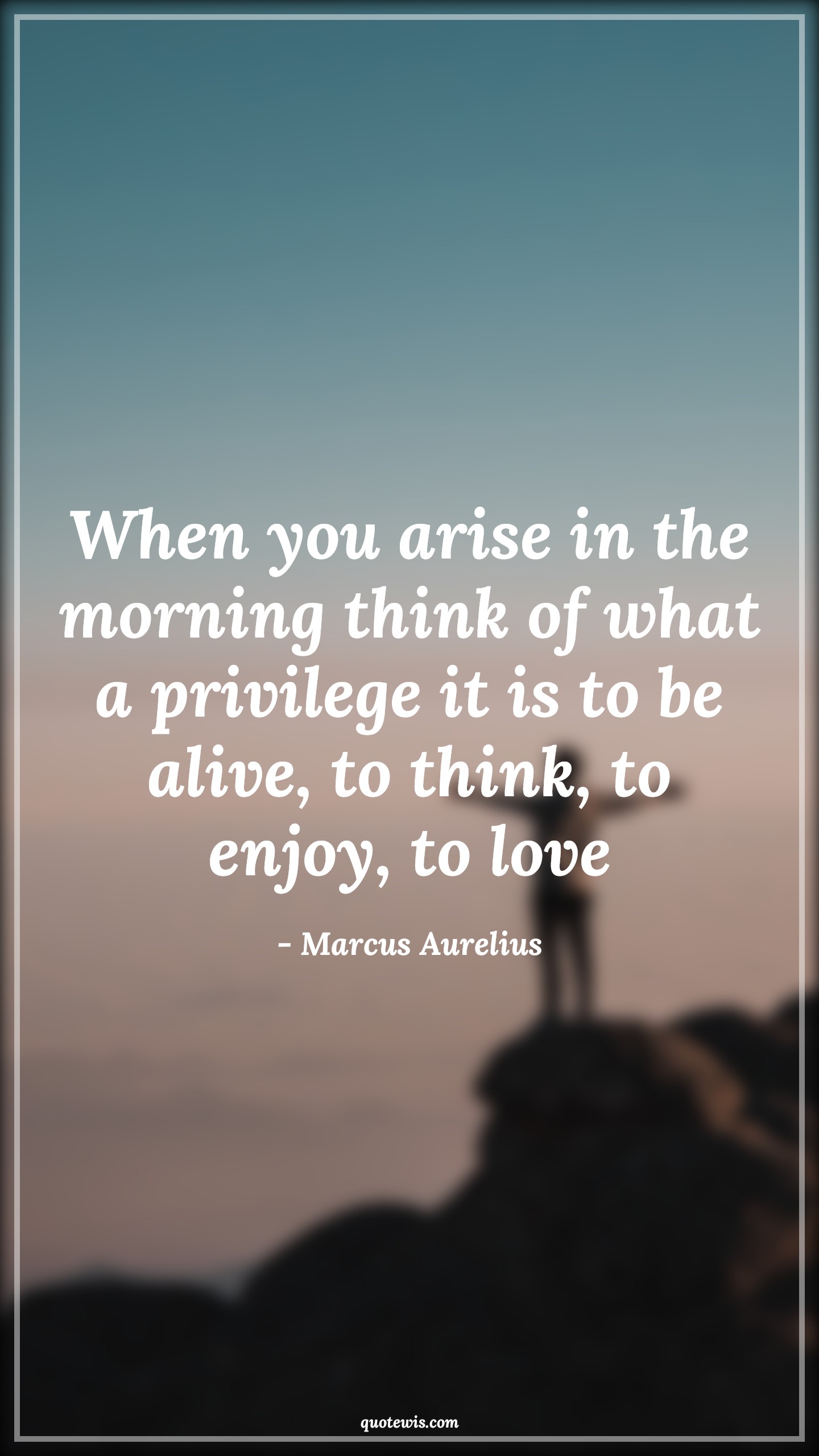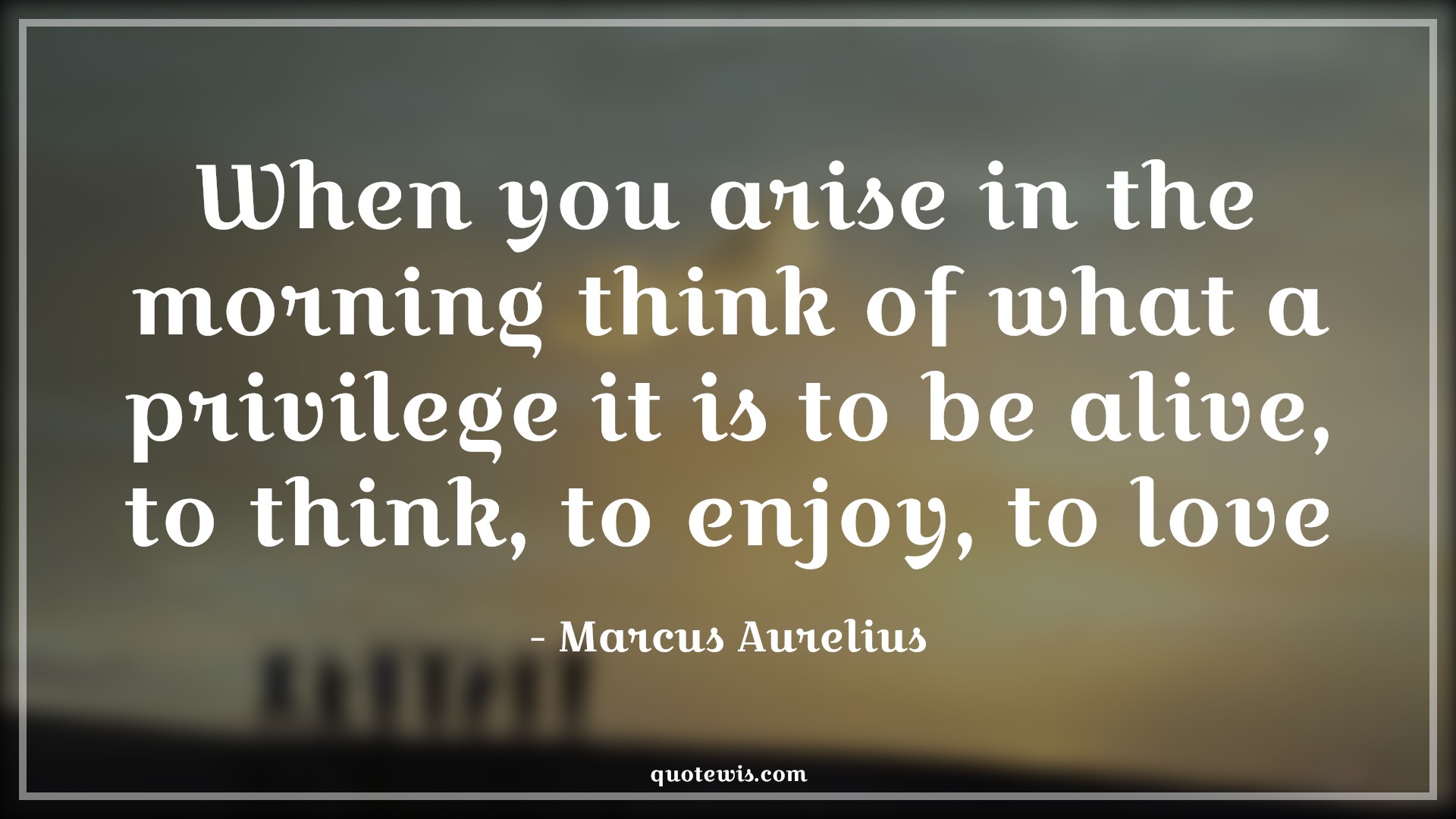 When you arise in the morning think of what a privilege it is to be alive, to think, to enjoy, to love