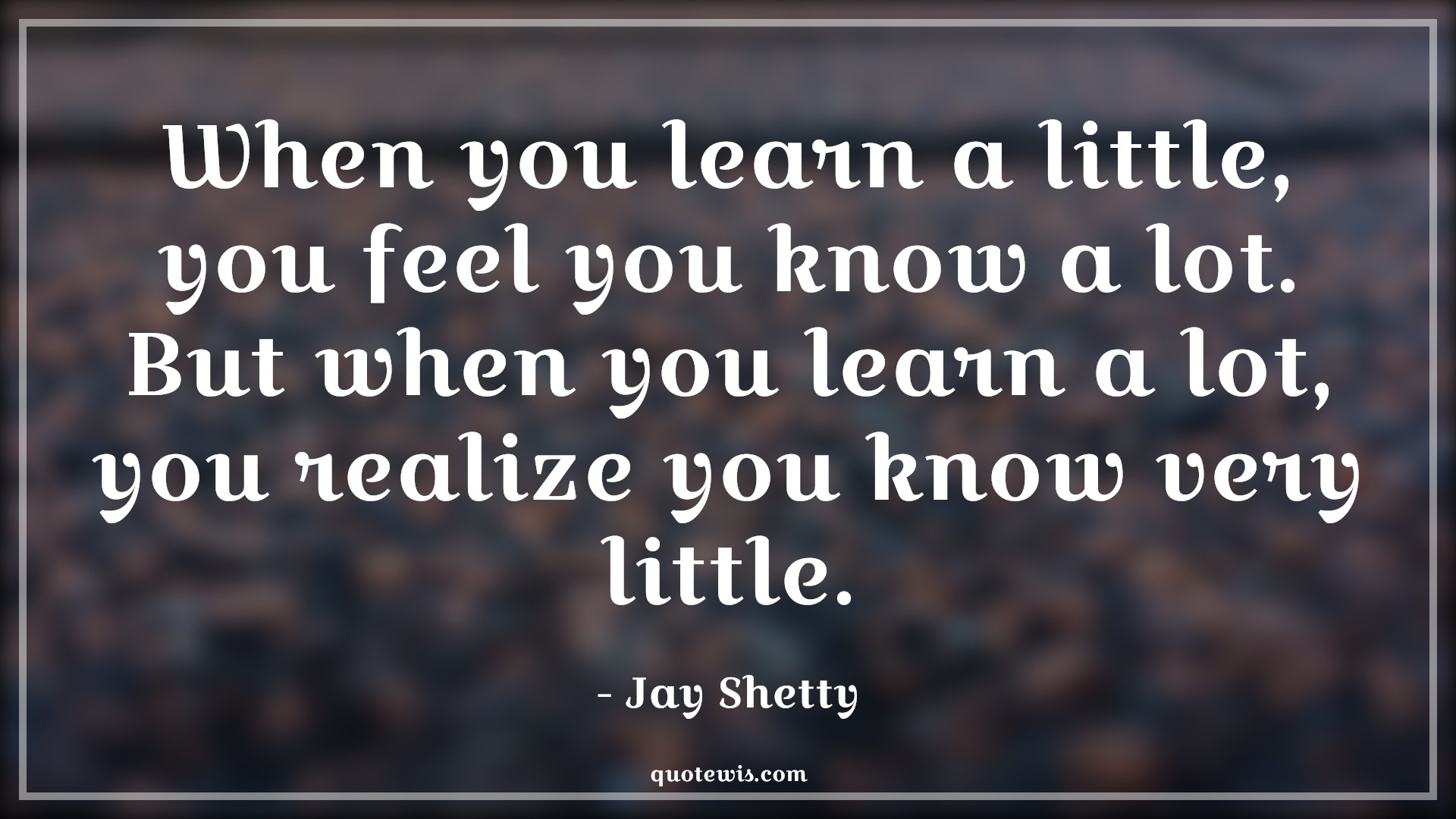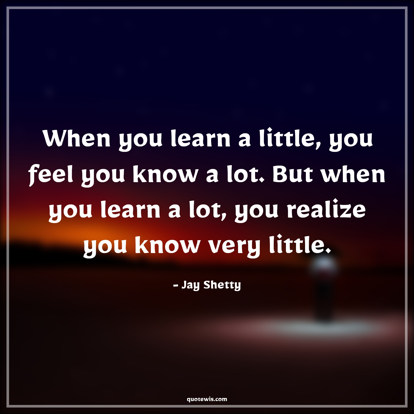 When you learn a little, you feel you know a lot. But when you learn a lot, you realize you know very little.