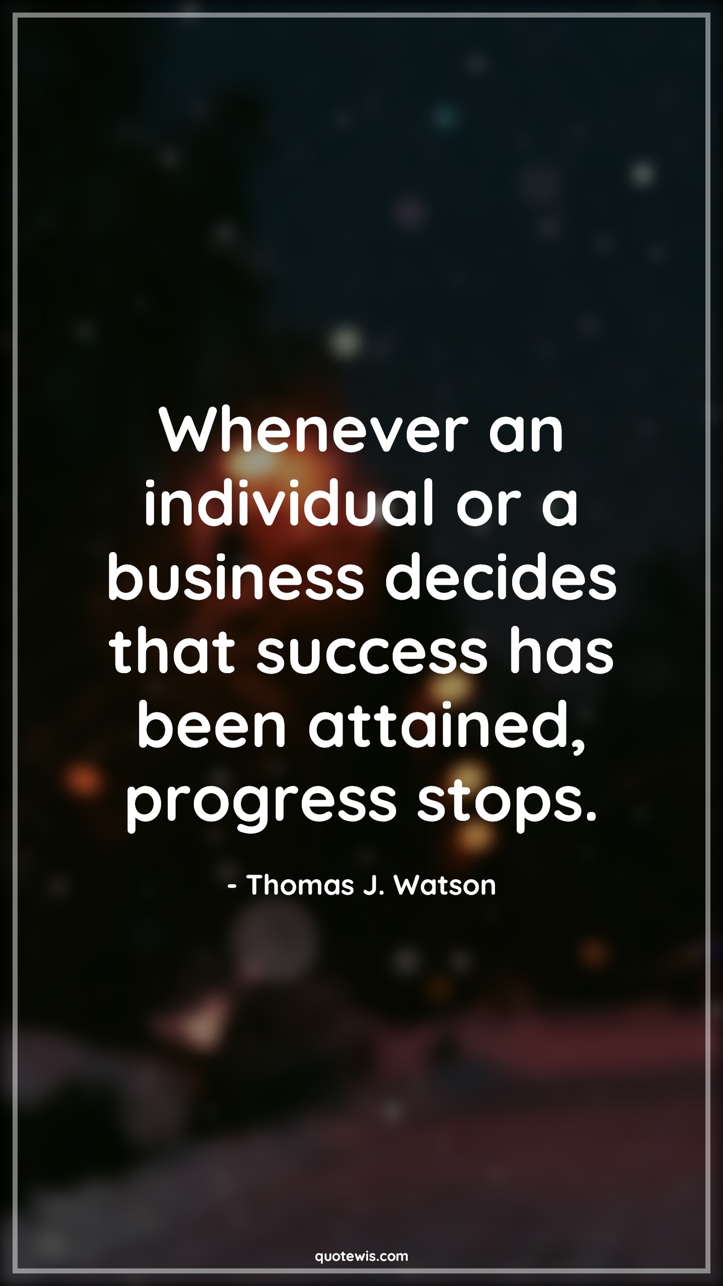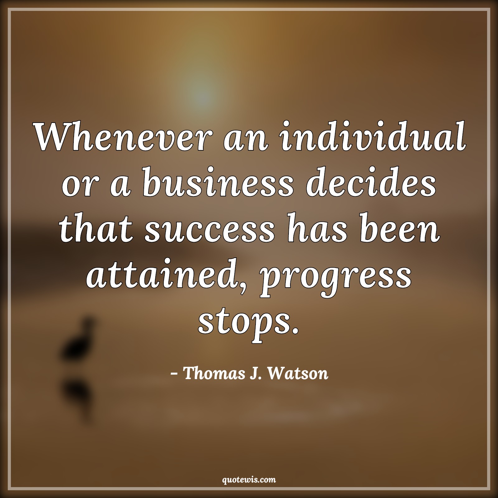 Whenever an individual or a business decides that success has been attained, progress stops.
