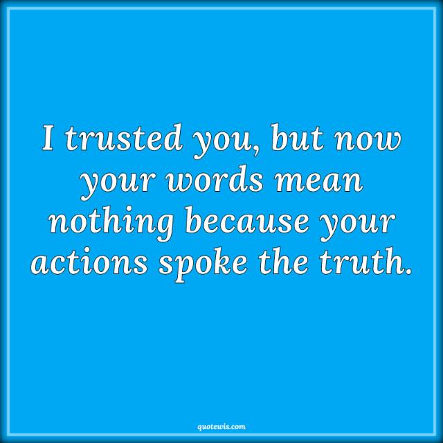 I trusted you, but now your words mean nothing because your actions spoke the truth.