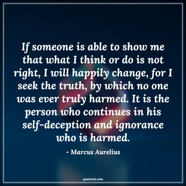If someone is able to show me that what I think or do is not right, I will happily change, for I seek the truth, by which no one was ever truly harmed. It is the person who continues in his self-deception and ignorance who is harmed.