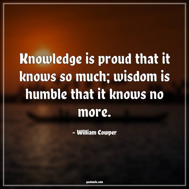 Knowledge is proud that it knows so much; wisdom is humble that it knows no more.