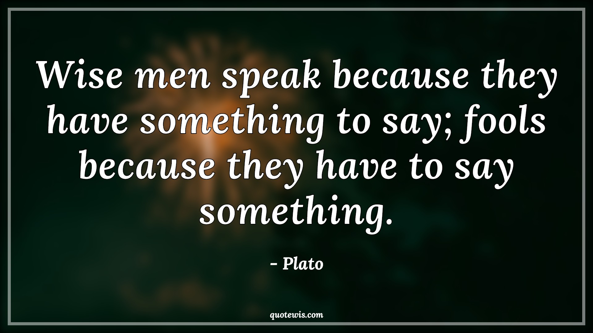 Wise men speak because they have something to say; fools because they have to say something.