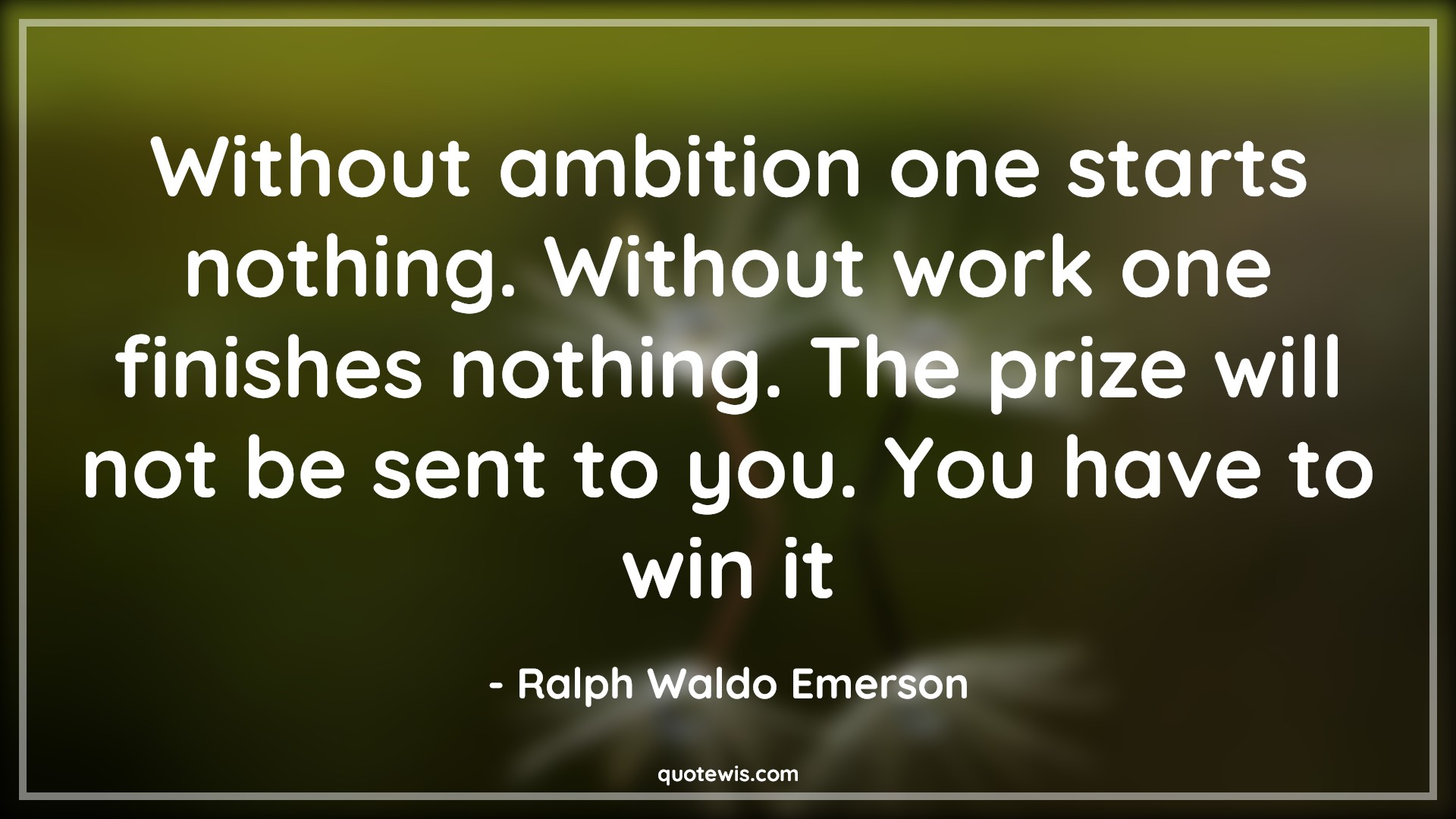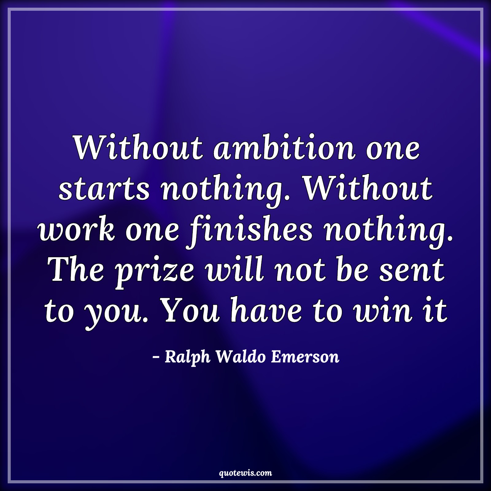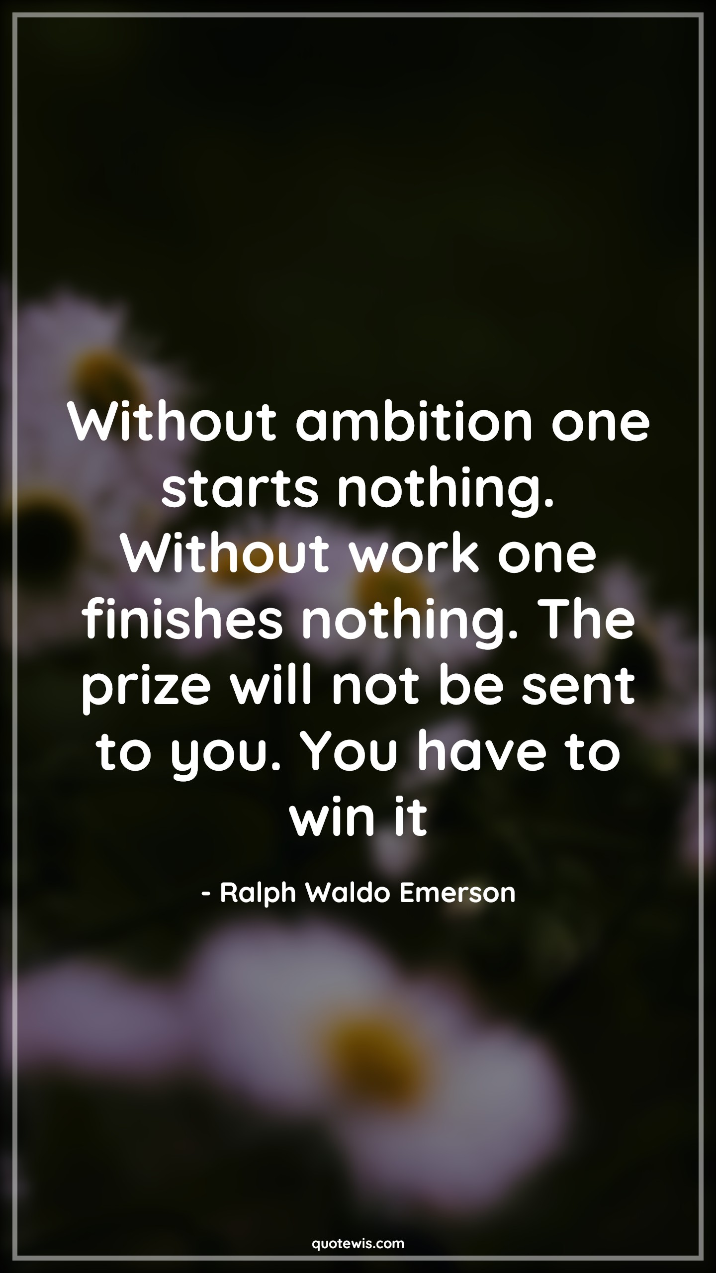 Without ambition one starts nothing. Without work one finishes nothing. The prize will not be sent to you. You have to win it