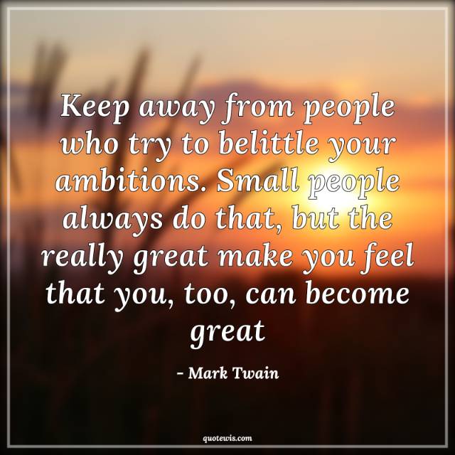 Keep away from people who try to belittle your ambitions. Small people always do that, but the really great make you feel that you, too, can become great