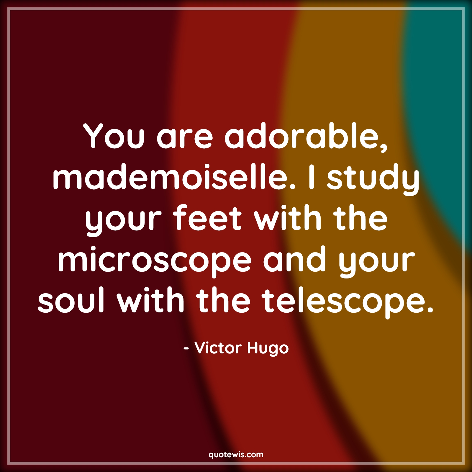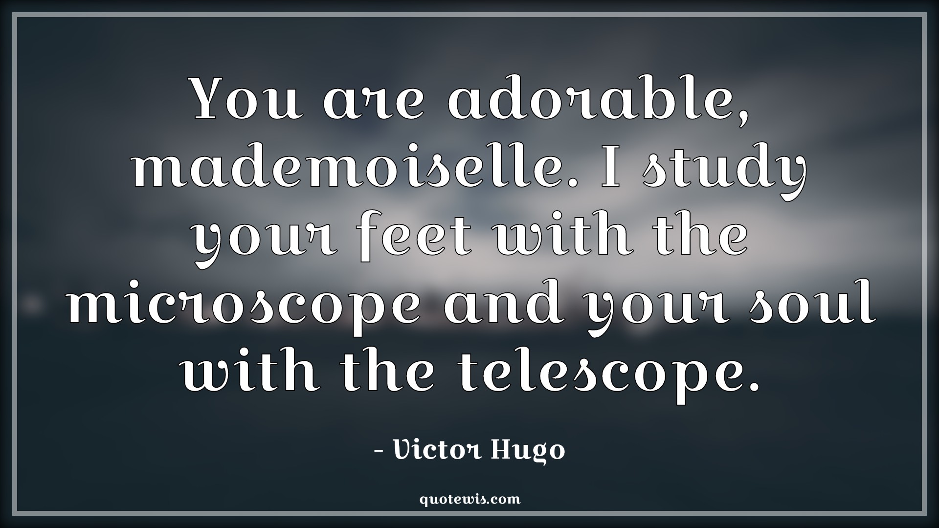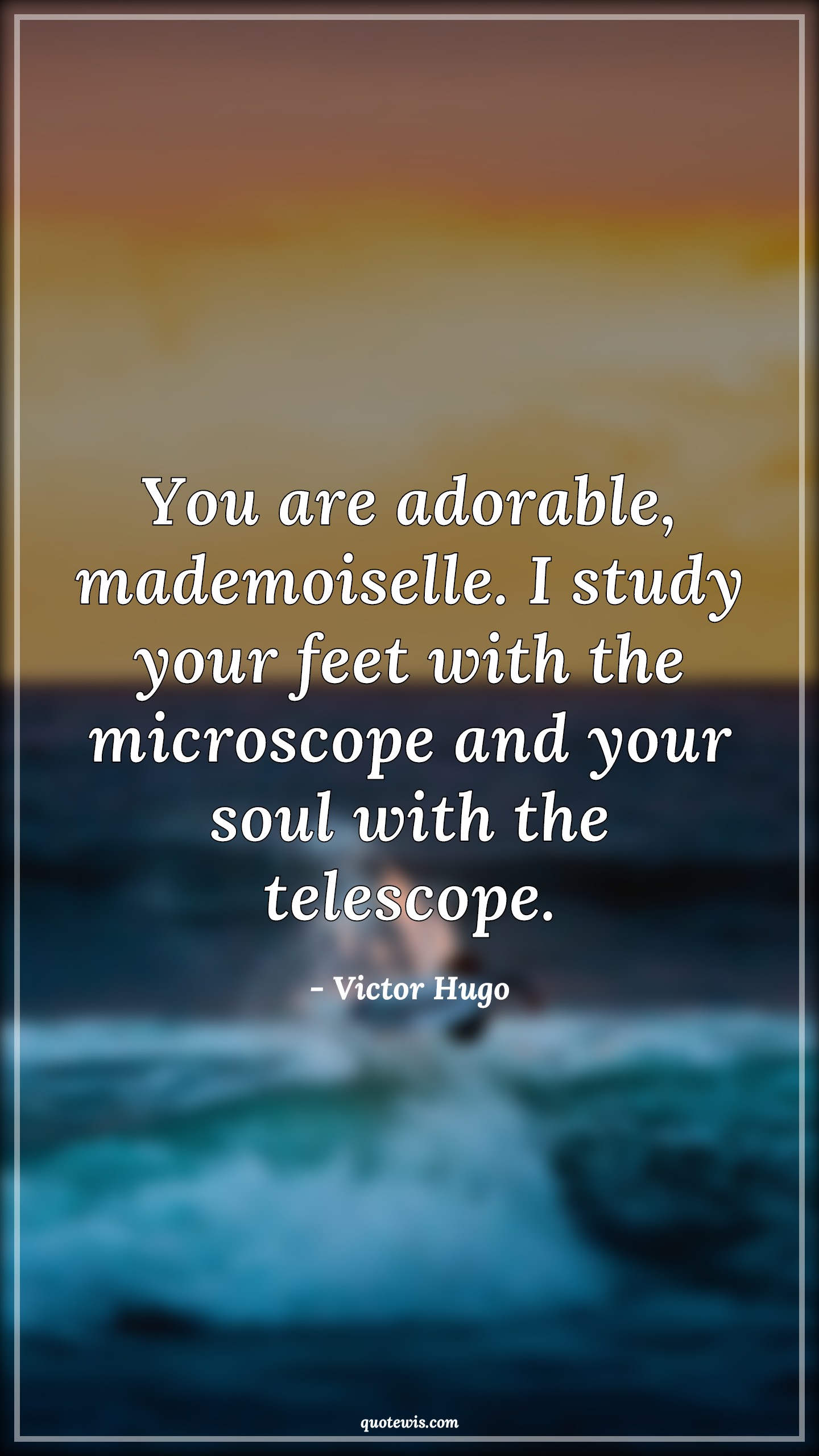 You are adorable, mademoiselle. I study your feet with the microscope and your soul with the telescope.