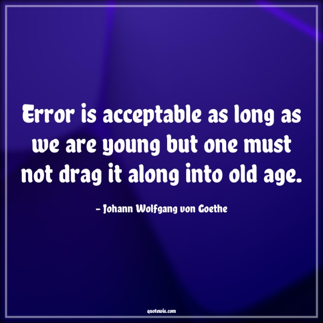 Error is acceptable as long as we are young but one must not drag it along into old age.