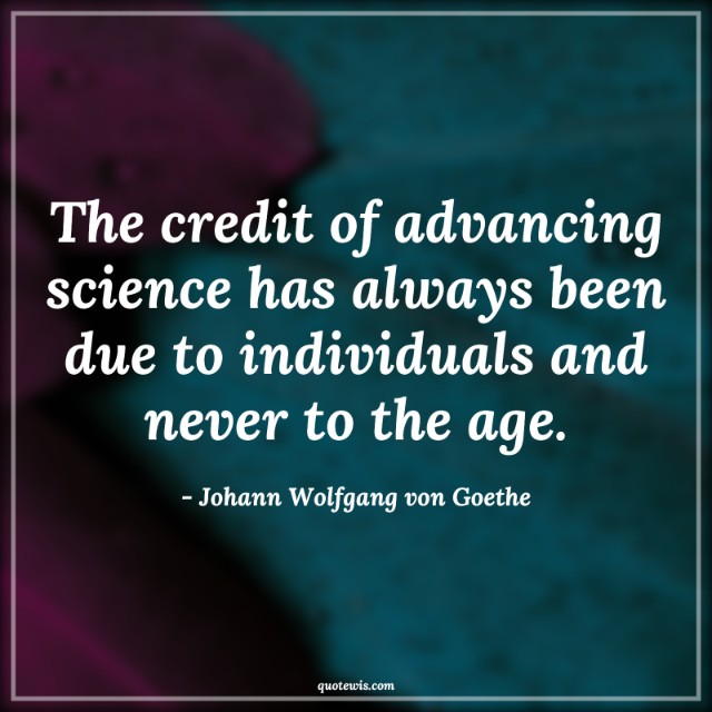 The credit of advancing science has always been due to individuals and never to the age.
