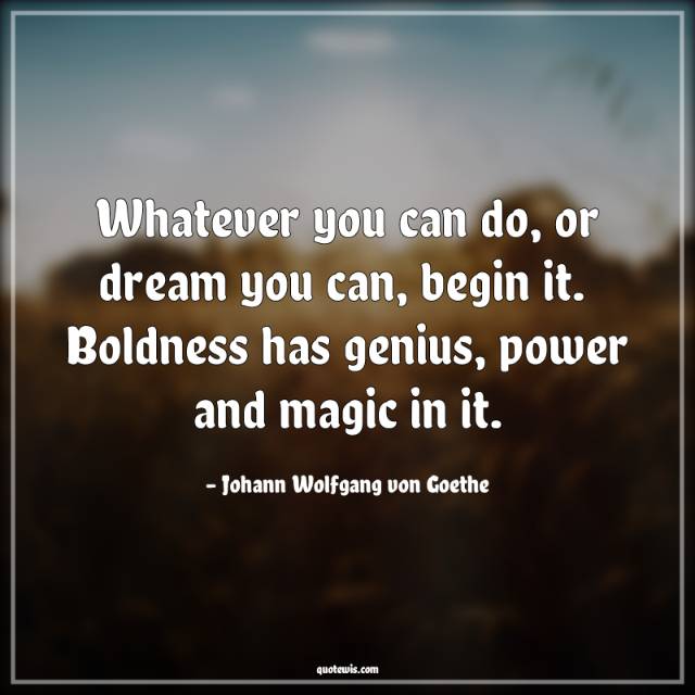 Whatever you can do, or dream you can, begin it. Boldness has genius, power and magic in it.