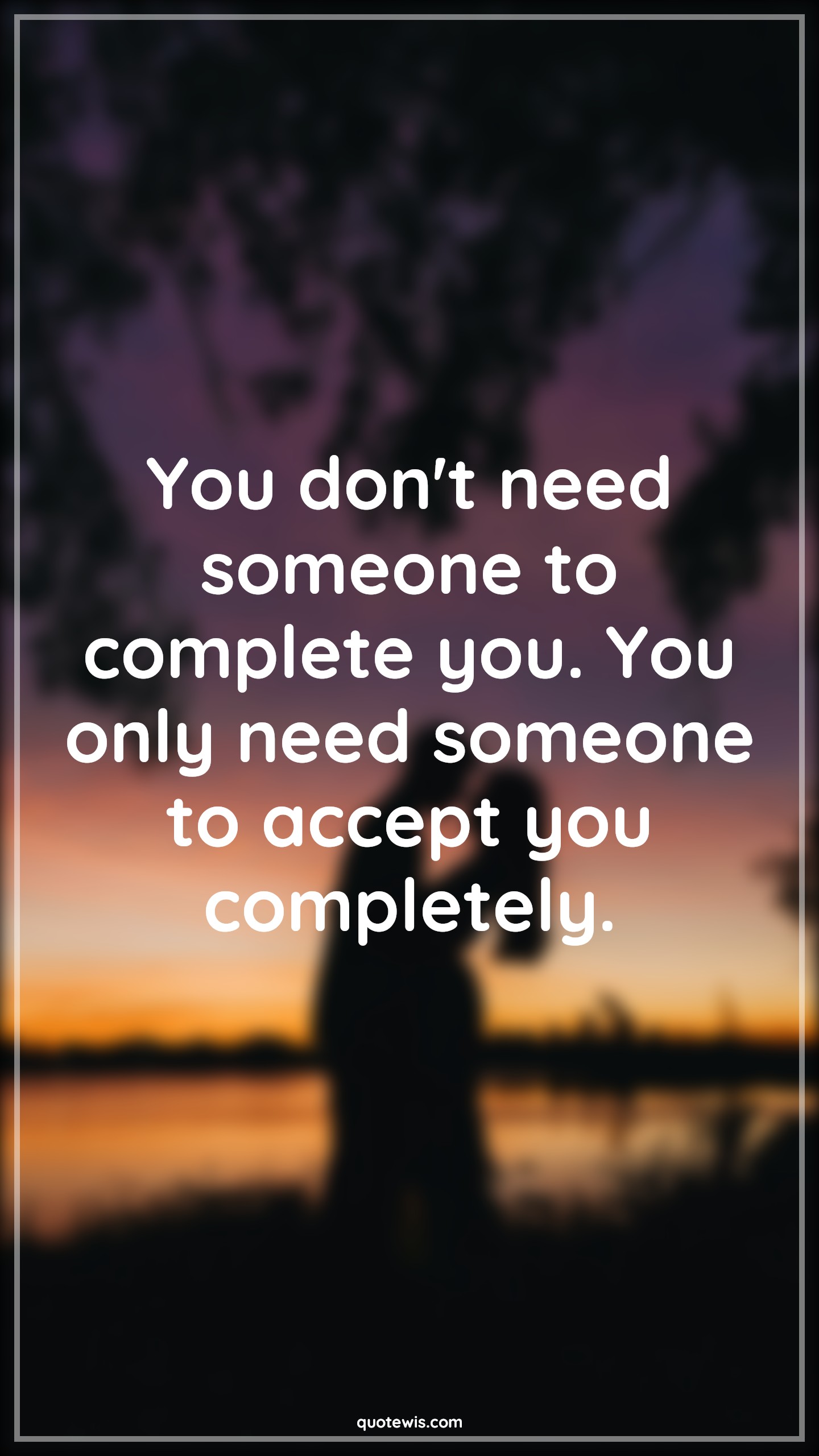 You don't need someone to complete you. You only need someone to accept you completely.