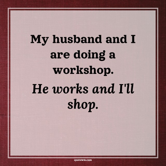My husband and I are doing a workshop. He works and I'll shop.