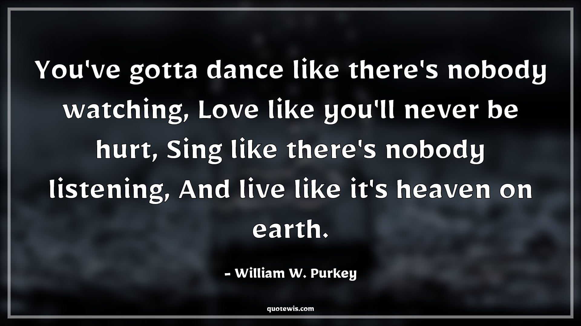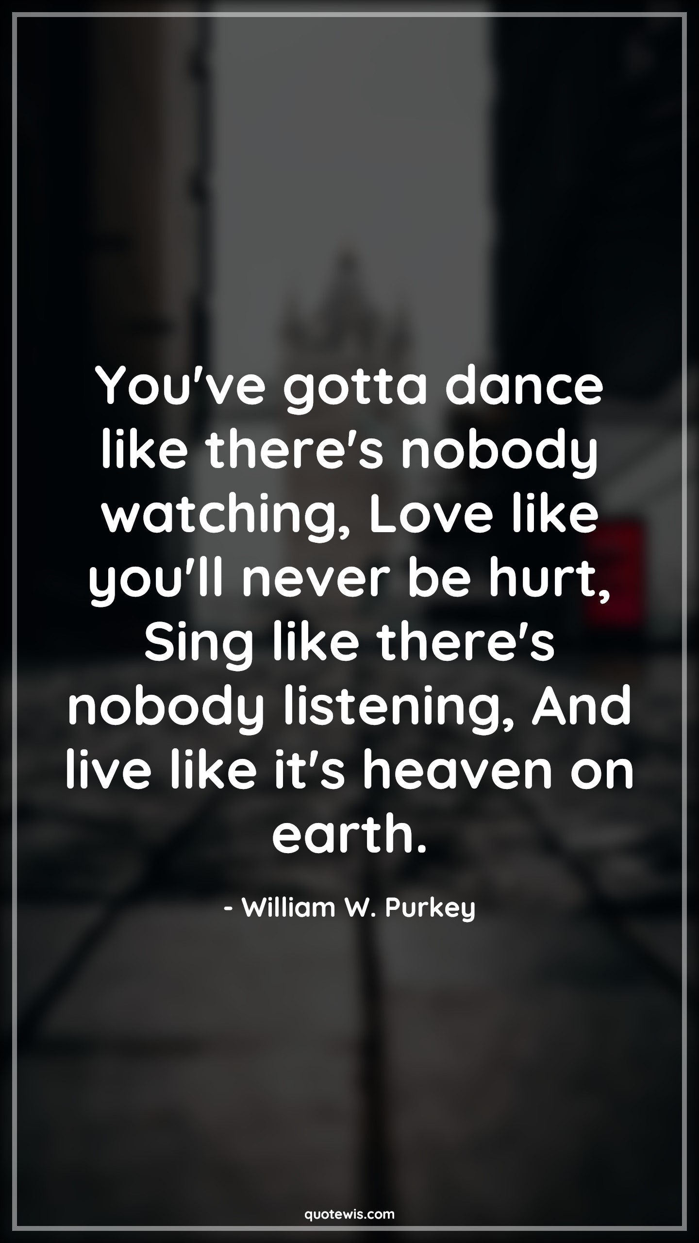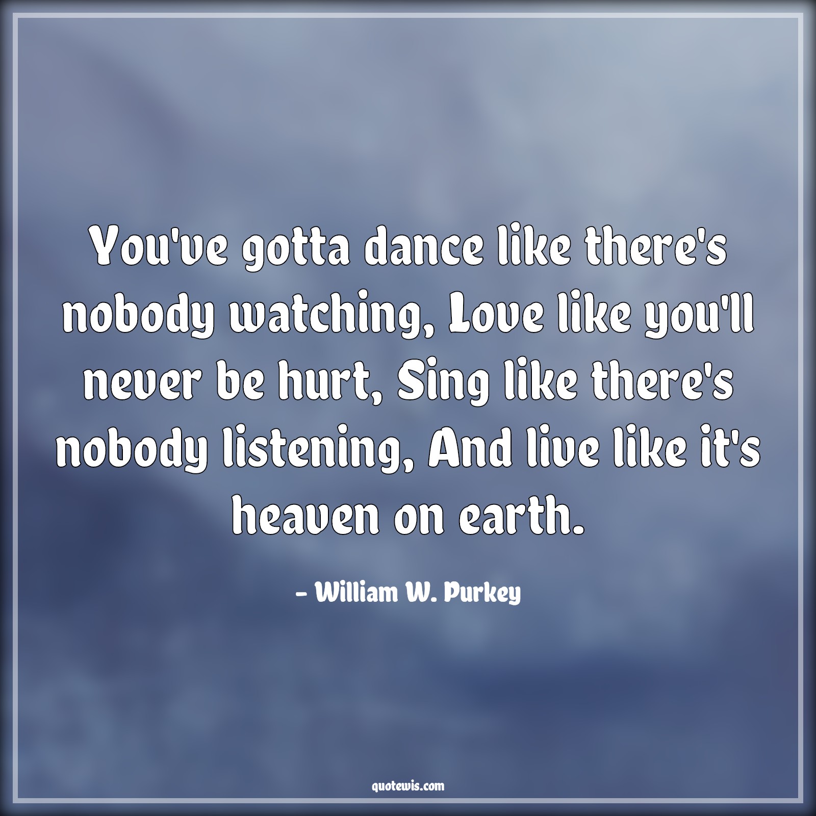 You've gotta dance like there's nobody watching, Love like you'll never be hurt, Sing like there's nobody listening, And live like it's heaven on earth.