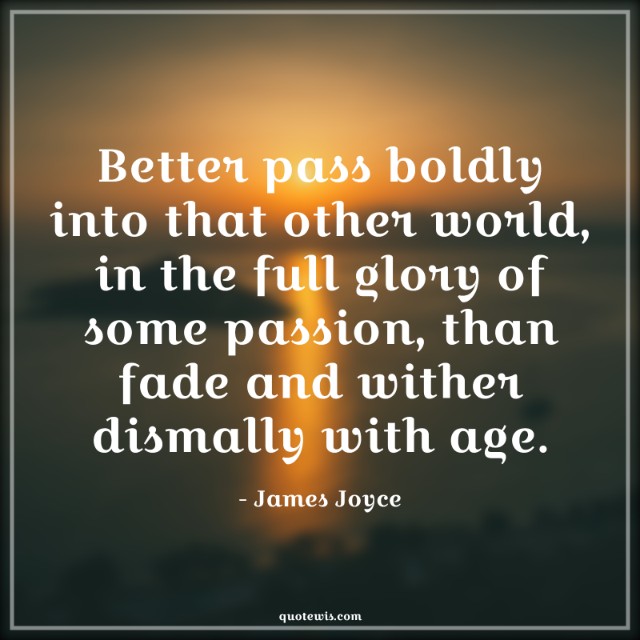 Better pass boldly into that other world, in the full glory of some passion, than fade and wither dismally with age.
