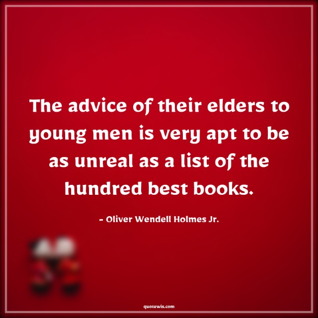 The advice of their elders to young men is very apt to be as unreal as a list of the hundred best books.