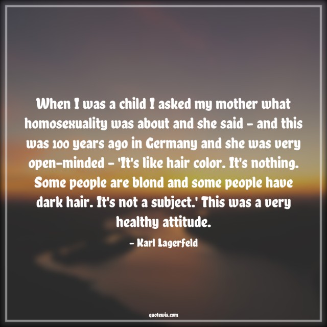 When I was a child I asked my mother what homosexuality was about and she said - and this was 100 years ago in Germany and she was very open-minded - 'It's like hair color. It's nothing. Some people are blond and some people have dark hair. It's not a subject.' This was a very healthy attitude.