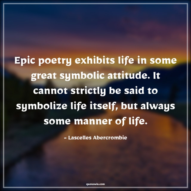 Epic poetry exhibits life in some great symbolic attitude. It cannot strictly be said to symbolize life itself, but always some manner of life.
