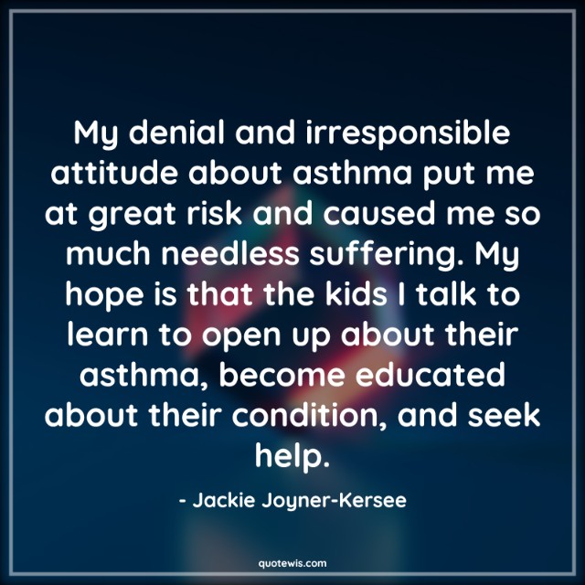 My denial and irresponsible attitude about asthma put me at great risk and caused me so much needless suffering. My hope is that the kids I talk to learn to open up about their asthma, become educated about their condition, and seek help.
