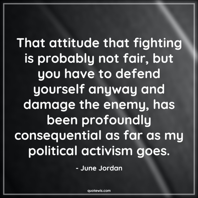 That attitude that fighting is probably not fair, but you have to defend yourself anyway and damage the enemy, has been profoundly consequential as far as my political activism goes.