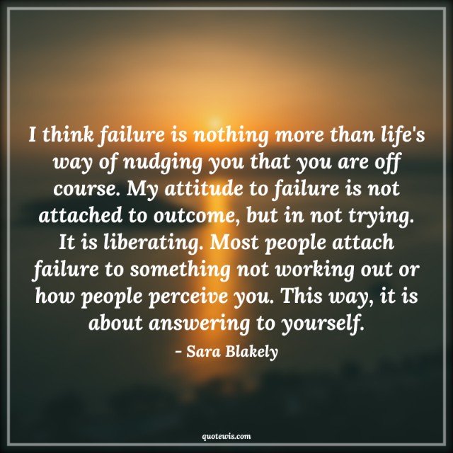 I think failure is nothing more than life's way of nudging you that you are off course. My attitude to failure is not attached to outcome, but in not trying. It is liberating. Most people attach failure to something not working out or how people perceive you. This way, it is about answering to yourself.