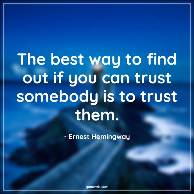 The best way to find out if you can trust somebody is to trust them.