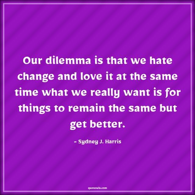 Our dilemma is that we hate change and love it at the same time what we really want is for things to remain the same but get better.
