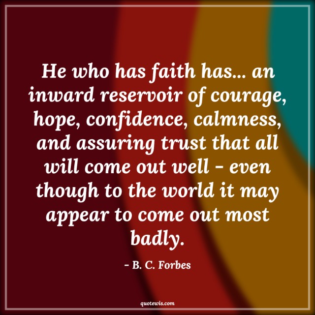 He who has faith has... an inward reservoir of courage, hope, confidence, calmness, and assuring trust that all will come out well - even though to the world it may appear to come out most badly.
