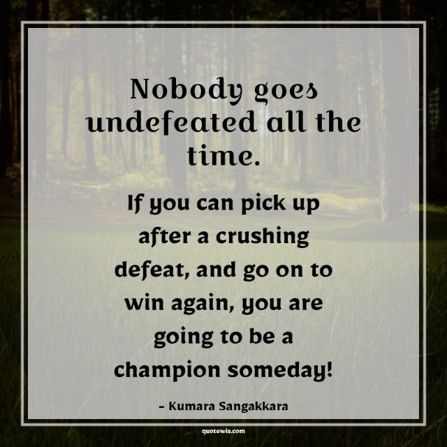 Nobody goes undefeated all the time. If you can pick up after a crushing defeat, and go on to win again, you are going to be a champion someday!