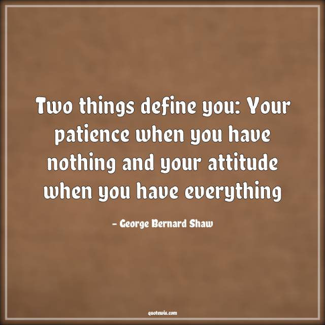 Two things define you: Your patience when you have nothing and your attitude when you have everything