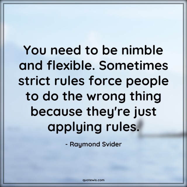 You need to be nimble and flexible. Sometimes strict rules force people to do the wrong thing because they're just applying rules.