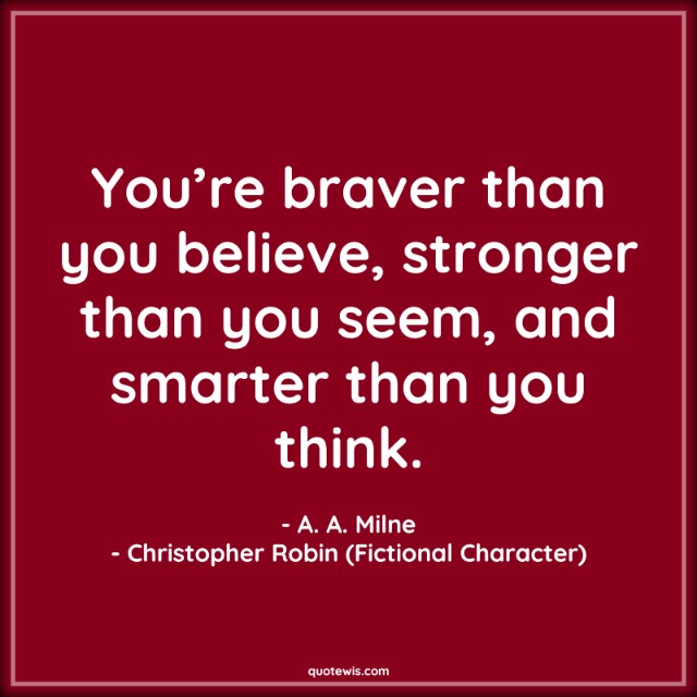 You’re braver than you believe, stronger than you seem, and smarter than you think.
