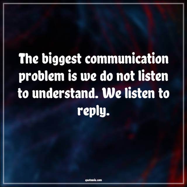 The biggest communication problem is we do not listen to understand. We listen to reply.