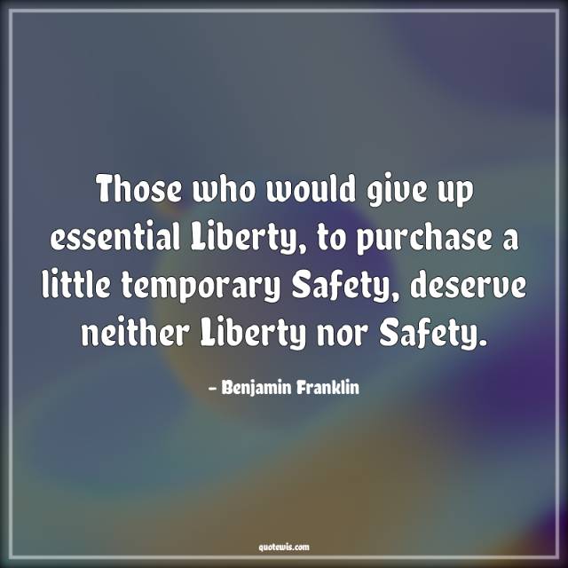 Those who would give up essential Liberty, to purchase a little temporary Safety, deserve neither Liberty nor Safety.