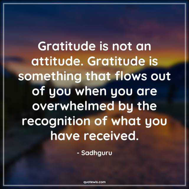 Gratitude is not an attitude. Gratitude is something that flows out of you when you are overwhelmed by the recognition of what you have received.