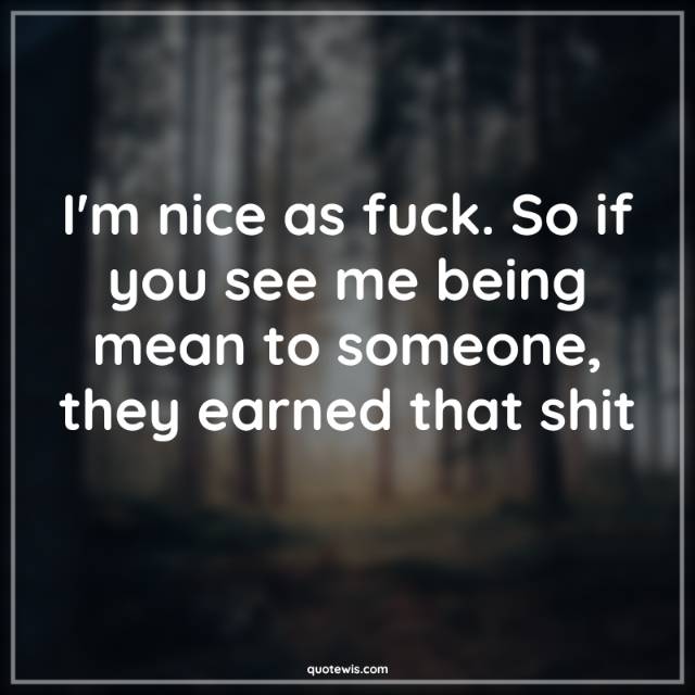 I'm nice as fuck. So if you see me being mean to someone, they earned that shit