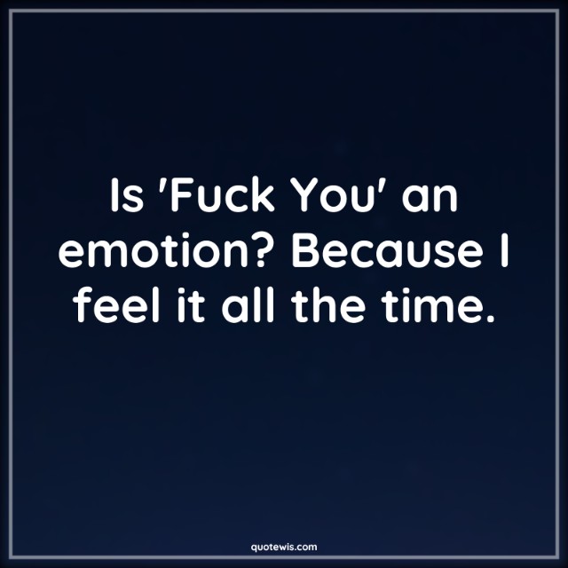 Is 'Fuck You' an emotion? Because I feel it all the time.
