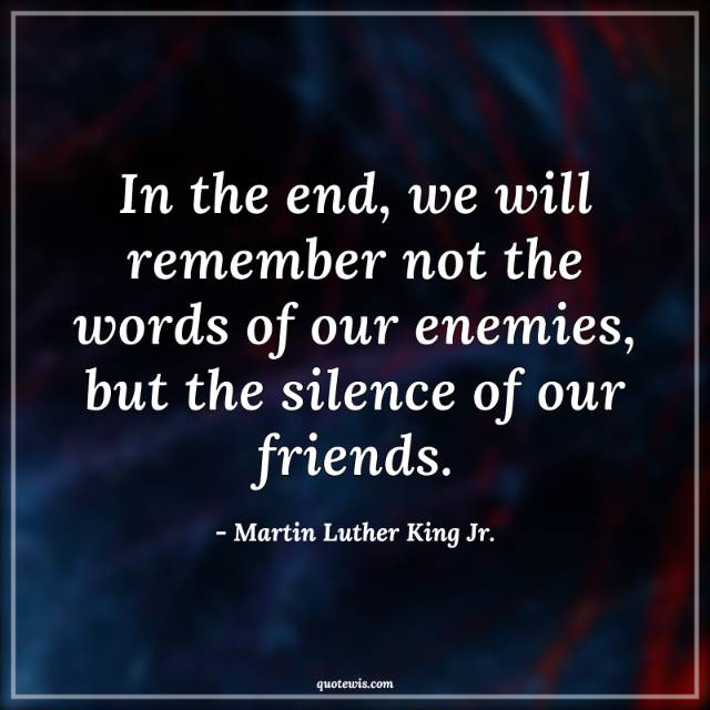 In the end, we will remember not the words of our enemies, but the silence of our friends.