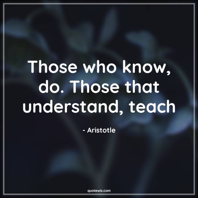 Those who know, do. Those that understand, teach