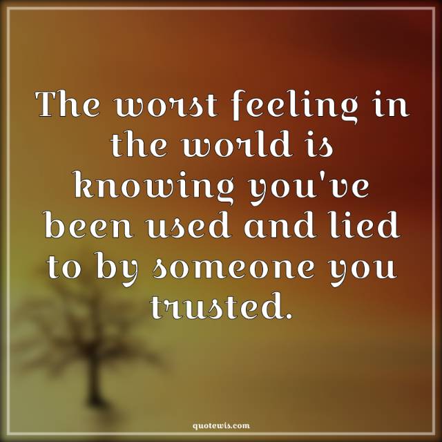 The worst feeling in the world is knowing you've been used and lied to by someone you trusted.
